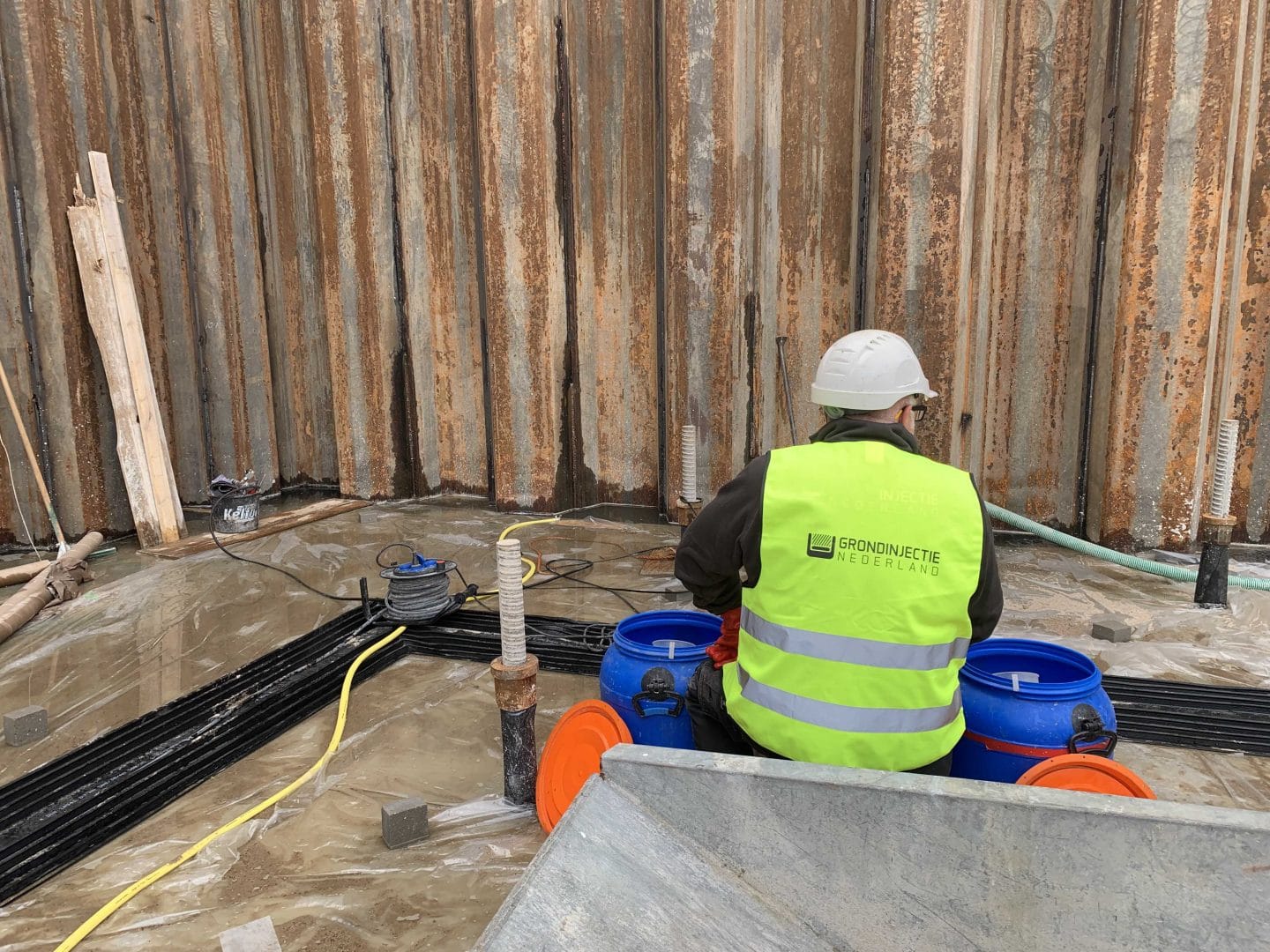 We zijn in Amersfoort druk bezig geweest met een constructieve grondinjectie. We stabiliseren het zand pakket onder de fundatie om zo een dragende wand te maken.